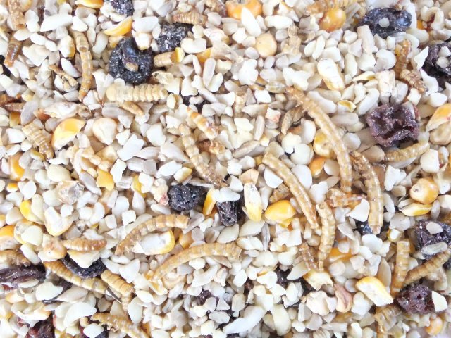 Contains broken sunflower kernels, kibbled peanuts, kibbled maize, sultanas and dried mealworms.