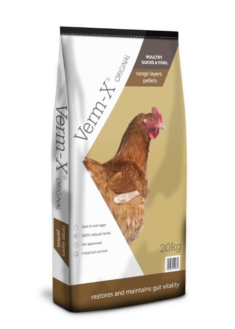 This daily complete layers pellet with added Verm-X Original is vet approved for use on farms, smallholdings or even just to feed your free-ranging garden flock. Verm-X is made from completely natural ingredients and offers effective intestinal control that is free from artificial chemicals.